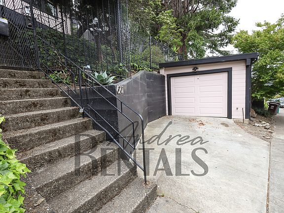 Upper Rockridge mid-century 3 bed/2 bath + bonus room home! Perched just a few blocks above vibrant College Avenue, this stylish two-story terraced home offers hillside views, charming mid-century details, and a beautifully landscaped backyard perfect for summer entertaining. At street level, you'll find a one-car garage and a gated front yard that leads to the welcoming entry. Inside, the lower level features a spacious bonus room with a cozy fireplace ideal as a den or media room alongside a separate laundry area, a versatile office space, and additional storage. Upstairs, the main living area is bathed in natural light, thanks to floor-to-ceiling windows that frame the open-concept living and dining space. Two well-sized bedrooms sit just off the living room, separated by a vintage-style bathroom with a shower-over-tub combination. An updated kitchen with stainless steel appliances, a five-burner gas range, dishwasher, and modern finishes flows into a secondary dining area with direct access to the lush backyard. The adjacent primary suite features an ensuite bathroom and doors that open to your private outdoor retreat. The fully fenced backyard unfolds over three terraced levels, each offering sitting areas or simply enjoying the breathtaking views of the surrounding hills. Fantastic Upper Rockridge location just a short jaunt to Temescal Lake, Village market, and all the great restaurants and shops on College Avenue. Rent: $6,650/month Tenant covers all utilities and owner covers gardener Small pet considered w/ deposit 12 month lease Available now!