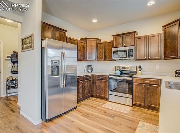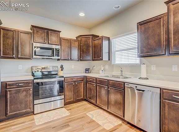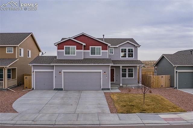 Amazing 1 Year Old Beautiful - Big - Practically New 4/3/3 Home In Perfect Condition! This gorgeous 2 story home is located on a large fenced / landscaped lot that backs to trails and open space. Close to Ft Carson, Peterson AFB, Schriever AFB, shopping, schools and parks. The home has a large gourmet kitchen w/ custom castled cabinets and stainless appliances. The main level has an office just off the entry; an open concept as you reach the Living room, Dining room and Kitchen and a 1/2 bath for convenience. The upper level has a 4 bedrooms - The Large Master Suite is adjoined to a 5 pc Master bath and a walk-in closet. There is a full bathroom and the laundry room on the upper level as well. Enjoy the recently added a/c to keep cool in the summer months. Don't Miss This Gem!!!