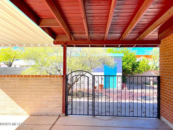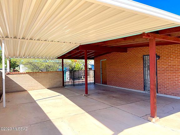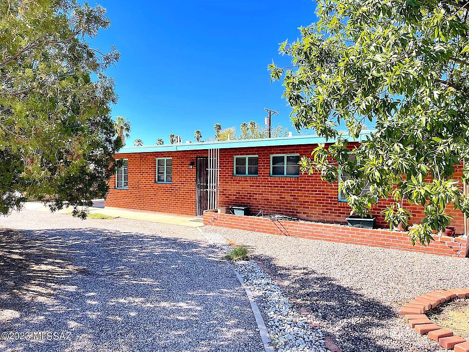 Quaint red brick home located centrally to shopping, restaurants, Davis Monthan AFB, U of A and bus lines. Located on a good-sized lot with 2 separate covered parking spaces. In the yard will find mature trees, citrus, bbq area and a 17 1/2' x 12' (inside measurement) block-built workshop. The approximate measurements for other portions of the home: Bed 1 is 10 1/2' x 10 1/2', Bed 2 is 13' x 11 1/2', Bed 3 is 9 1/2' x 11 1/2'. The kitchen measures 17 1/2' x 8 1/2', Double carport is 30' x 25 1/2' and storage room 8' x 5'. Brand new roof coating and some of the sewer pipe was replaced in the last couple of weeks. This home is being sold in ''AS-IS'' condition and with some TLC, this can be a charming home!
