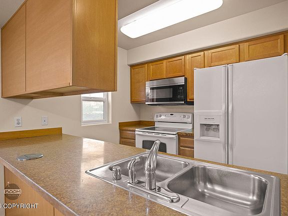 Well-maintained, end-unit condo offers 2 bedrooms, 1.5 baths, and a freshly painted interior. The open-concept layout creates a bright and inviting space, with natural light flowing throughout the living, dining, and kitchen areas. The primary suite features a spacious walk-in closet. Private fenced backyard. Quick access to local universities, hospitals, and JBER.