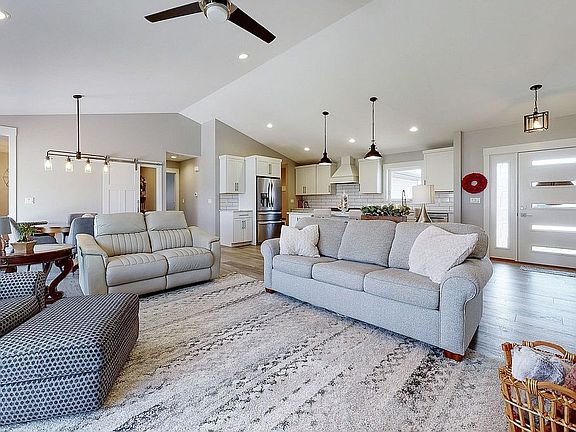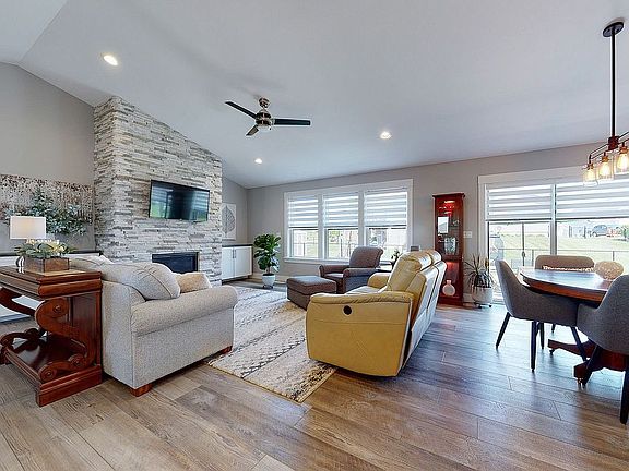 CLOSE TO PARK AND DIRECT ACCESS TO HOOVER TRAIL BIKE PATH This like new open floor plan ranch is located in a family-friendly neighborhood, on a quiet cul-de-sac conveniently located near schools, businesses and parks. Walking into this beautiful home you'll find luxury vinyl plank floors, a vaulted ceiling, along with a floor to ceiling stone-wrap gas fireplace with adjacent built in cabinets. On the main level are 3 carpeted bedrooms, 2 full baths, and laundry with washroom sink. The kitchen features luxury vinyl plank floors, quartz top counters and island, subway tiled backsplash, and a large walk-in pantry. The stainless steel gas stove, double door refrigerator, dishwasher and microwave all stay with the home as do the washer and dryer. The primary bedroom is located on the main level and features carpet floors, a tray ceiling, and a walk-in closet. The attached primary bath includes sliding doors, tile floors, quartz counters, and a large tiled walk-in shower. The unfinished lower level is designed for future expansion for bedrooms and bath. Outside you'll find a front porch and 13x15 patio overlooking the flat, well groomed yard with a chain link fence. Call today for a private showing! Property Improvements: - Chainlink Fence and 2 Gates - 2019