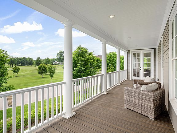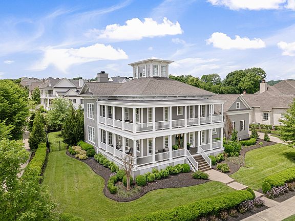 Embrace the true essence of Southern living in this enchanting home featuring expansive double wraparound front porches. Take in breathtaking 360° views of rolling hills and the golf course from the third-floor belvedere. This vantage point offers an unmatched perspective of the 17th green and 18th tee box, unlike any other! Inside, abundant natural light fills the open floor plan, connecting the expansive kitchen, great room, and formal dining room. Elegant main floor primary suite boasts an oversized closet featuring an island for added convenience. Upstairs, enjoy 3 en-suite bedrooms, a media room w/ wet bar, and an oversized bonus room w/ additional flex room. Outside, a covered back porch w/ fireplace overlooks the flat backyard with mature landscaping. Additional features include an updated interior, plantation shutters, ample storage, inground trampoline with room for a pool. Located in the luxurious gated community of The Grove, offering a wealth of additional amenities.