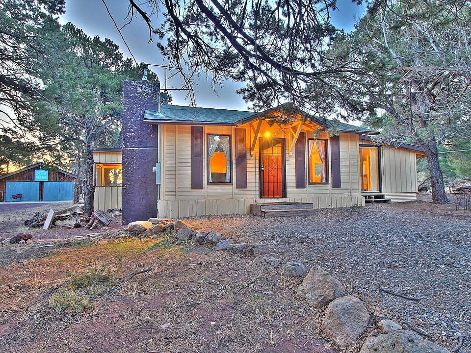 Bask in the natural beauty that the bordering National Forest has to offer--all from the comfort of your own home! This quaint and cozy 2-bedroom home sits atop a fenced, well kept, heavily treed 2.5 acre lot. Only .2 miles from the new fire station, this rustic property is perfect for anyone looking for a peaceful, private setting with easy access to town. The property is equipped with power, water, and natural gas--including a new electrical panel as of April 2017. The property features a new pellet stove, 4-car garage, a large barn/workshop, wood sheds for storage, and a carport. Schedule your private showing today!