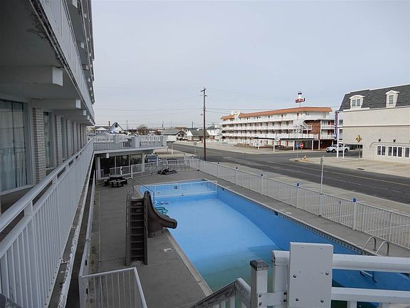 (COMING SOON! Carpeting will be removed and new vinyl plank flooring will be installed in mid-January.) The Nassau Inn is a well managed resort property with everything that you will need and expect for your perfect Wildwood Crest beach vacation. Stay when you want to stay, and rent when you are away with built in onsite property management. The unit features one bedroom with two queen beds and an HDTV with cable; a full bath with shower over tub; an efficiency kitchen with a full sized refrigerator, microwave, and a cook top; and a spacious living room with a sleeper sofa, a big screen HDTV, and a dining area. All furniture and furnishings are included, as are the stunning pool, ocean, and island views from this top floor next to end unit. The building offers a direct oceanfront location, a heated pool with slide, sun decks, grills, outdoor showers, one parking space per unit, a laundry room, a game room, and an elevator. Your monthly condo fee includes all general maintenance; all inspections and licenses; pool heat and maintenance; daily housekeeping/cleaning services through out the season; utilities (electric, gas, water, sewer, cable); and fire, liability, and flood insurances. Sit back and collect your rent checks! All of the work is done for you here. The front desk handles all of the rental management services for you - advertising, screening, bookings, leases, deposits, check in/out, and daily turnover cleanings. These services are covered in your condo dues which means that you keep all of the rent. (See annual rent totals in associated documents.)