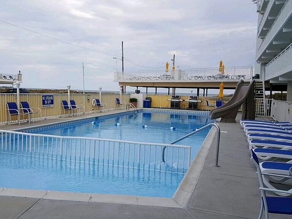 The Nassau Inn - This lovely corner unit is located on the 5th floor offering amazing views of the ocean and beach. Relax inside or outside of your condo and watch the fireworks from the famous Wildwood Boardwalk. Everything is new - tiled flooring throughout, new kitchen and bathroom, new mattresses, new full size refrigerator and new air conditioner (Cooling and Heating). Outside shower and BBQ area, one car parking If you are looking for an investment property this is it!!! Unit #510 has a great rental history. Property amenities include an elevator, inground heated salt water pool, game room and within walking distance of restaurants, mini-golf, trolley ride, boardwalk and a short drive to Historic Cape May.