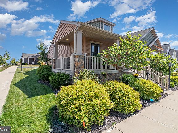 Welcome to Union Station, a walkable community where convenience meets charm. Just steps from your front door, you’ll enjoy dining, shopping, a local brewery, a salon, and scenic walking trails. Built in 2021, this single-level ranch boasts a wrap-around porch, beautiful landscaping, and an open layout designed for modern living. The kitchen features granite countertops, stainless steel appliances, an upgraded sink, vented microwave, breakfast bar, and recessed lighting—all flowing into a spacious dining area and oversized living room filled with natural light. The primary suite offers a peaceful retreat with a walk-in closet, ceiling fan, and private bath featuring a double vanity and stall shower. The second bedroom is generously sized and works perfectly for family, guests, or even as a home office or hobby room. A full bath with tub/shower is conveniently located nearby. Luxury vinyl plank flooring runs throughout the main living areas, while plush carpet adds comfort in the bedrooms. The dedicated main-level laundry room adds everyday convenience, keeping chores simple and accessible without the need to head downstairs. The large unfinished basement with egress window opens the door to endless possibilities—whether a gym, media room, or added living space. Extras include two refrigerators, freezer, washer, dryer, custom blinds, ceiling fans, and neutral paint tones. Outside, the backyard patio is a true highlight. A custom retractable awning—professionally installed after construction—creates a comfortable and shaded outdoor space, perfect for morning coffee, summer barbecues, or simply relaxing in the evenings. An oversized two-car garage, vibrant landscaping, and excellent curb appeal complete the package. Centrally located near major highways, restaurants, shopping, and only 8 miles from Hershey Medical Center, this home is also within the Central Dauphin School District. Move-in ready and waiting for you!