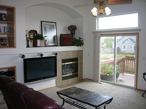 Gorgeous Ranch Home with Lovely View of Longs Peak Enter the hardwood foyer to a wonderful 3 bed 2 bath home featuring 2040 sqft finished space beautifully designed kitchen whardwood floors oak cabinets stainless steel gas stove wconvection oven open to family room wfireplace for great entertaining Master suite w5 piece master bath central heat AC 50 gal HW heater Large deck slab concrete patio wbeautiful views Great location backs to green belt park across the street