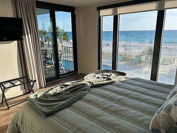 The oversized balcony overlooks the pool and makes you feel just steps to the Sandy White PCB beach. Wake up to the sound of the waves rolling in and never have to fight the elevator. The express elevator for the lower 6 floors is just outside the door. The gym is just steps from the front door, located on the second floor next to the express elevator!