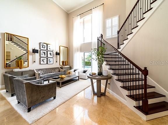 Luxury 5 bedroom 4.5 bathroom home in the elegant guard-gated community of Waterstone, with private access to Windermere Preparatory School, in Windermere, FL. Built on over 1/2 ACRE corner lot, this beautiful home features an oversized study on one side and a formal dining room large enough to accommodate all your family and guests on the other. A spectacular gourmet kitchen includes a large center island, breakfast area and bar overlooking the family room. Family room allows direct access to the covered lanai, pool, and brand new outdoor kitchen. The remote control retractable screens finish off the covered lanai with classy and privacy.Two Master Bedrooms, one on first floor and another on second floor to accommodate your family needs. A spacious Bonus Room with half bath and two additional bedrooms with a shared Jack and Jill. The 3 car garage and ample parking space are ideal for you and your guests. This home is a must see, if you are contemplating owning a one of a kind, contemporary retreat, call today to schedule your private tour. Highly rated schools! Just a short drive to the Attractions, "Restaurant Row" dining, Orlando International Airport, and Downtown Orlando.