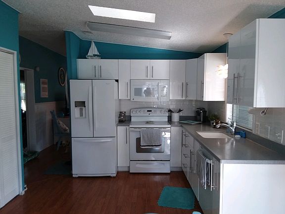 Two bedroom, two bath home completely renovated and ready to move into. The kitchen features white gel coat cabinets and grey granite countertops. Located on the largest lot in the park with orange, tangerine, grapefruit, and papaya trees.