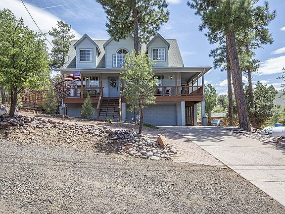 Incredible Views of the Mountains and Borders the Forest. Living room has gas fireplace and looks out to the Mountain View. Kitchen is upgraded with sun room and nice size dining. Large Master bedroom on main level. Lots of parking including RV parking -- large 2 car garage with work shop or game area. Enjoy viewing the abundant wildlife and incredible views from huge wrap around covered deck and patio looking out to the forest. This one shows pride of ownership.