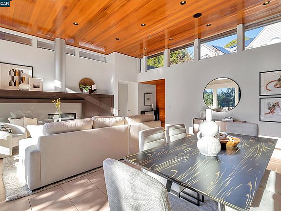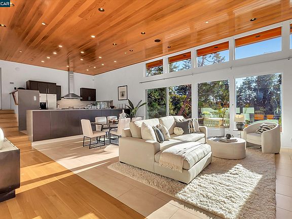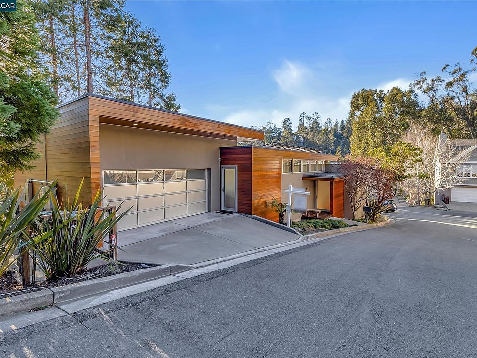 Easy elegance and sophisticated design in this modern masterpiece by Robert Swatt. This stunning custom built home nestled in the lower Montclair Hills was designed with the utmost attention to detail. Enter into the entertaining space with high, cedar planked ceilings and tranquil views out to the canyon. The living and dining area are highlighted by floor to ceiling windows and a large sliding door that opens to the generous balcony space making indoor/outdoor entertaining a breeze. The expansive chef's kitchen features stainless steel appliances including a Thermador 6-burner range with griddle, built-in double ovens, and a wine fridge. The main level features two bedrooms, one full bath and one half bath. One level below is the spacious primary retreat with private balcony and an oversized walk-in closet. The spa-like ensuite bath has radiant heated floors, a shower room complete with a soaking tub, multiple shower heads and six wall jets for the ultimate spa experience. There is a fourth bed and third bath ideal for an au pair or in-law set up. A large laundry room with abundant storage leads to the utility room and the home's smart hub. The garage is a car lover's dream with Bendpak 4 post lift. 3 Tesla PowerWalls and solar make this modern living at it's finest!