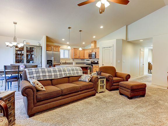 Thoughtfully designed single level that lives large! Delightful backyard that abuts acreage property for a country feel right in town, convenient east side location close to shopping, schools and parks. Vaulted ceilings and big windows give an open airy feeling inside, with a cozy front porch and spacious back patio for outdoor living. Mapping shows short term rental eligible, buyer to verify.