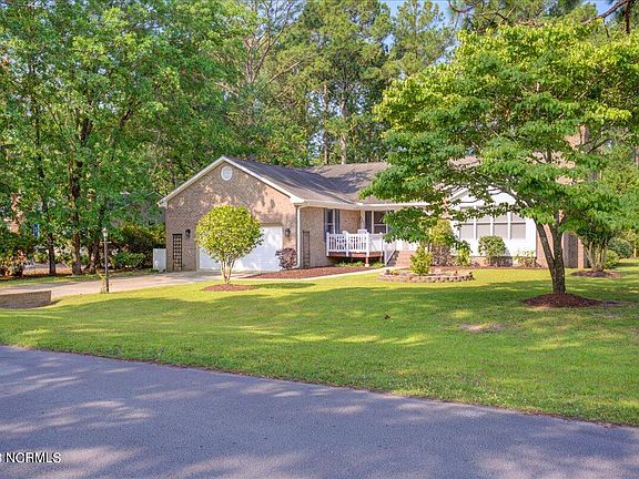 This 1989 built home has been almost completely updated! The 2250 sqft. home sits across the street from the Horseshoe Pond, on a beautifully landscaped 0.36 acre lot. You can sit on the front porch, the back deck, or in the Carolina/Sun Room, and enjoy the greenery that has been created. As you enter the front door, there you have a foyer where you can greet your guests and hang their coats in one of the two closets. Go to the right and enter into the Living Room with four large windows the morning sun pierces through, and in the evening you can enjoy the real wood burning fireplace. To the left you enter into a large Dining Room perfect for large families, or hosting dinner parties. Continue back to enter the well lit Kitchen with it's fairly new stainless steel appliances, and it's own little water heater under the sink for hot water instantly. The Kitchen is part of a large room with space for an island or small breakfast table, and on the opposite wall from the Kitchen, there's shelving for entertainment systems, books, art décor, or photos, you decide. From there you enter the Carolina/Sun Room where you can enjoy Eastern NC weather all year long, as it has it's own separate HVAC system with remote! Go back to the Foyer and down the Hallway to enter the first Bedroom/Office to the left, which comes with a desk and cabinet space. Next down the Hallway to the left is the Laundry Room with fairly new washer and dryer. There you have the entrance to the Garage, and in the Garage you have plenty of shelving for storage. There you will see the new water heater, the central vac, a new sprinkler system control panel, the system itself, the water softner, and the pull down stairs to more storage above the Garage. Go back to the Hallway and enter the next larger Bedroom to the left, with it's larger closet. Next is the Main Bathroom which has been completely updated. Then finally we enter the large Master Bedroom, with it's well lit Walk-In Closet, and updated Priv ate en suite Bathroom. Going out the Carolina/Sun Room you walk on to the large Back Deck with plenty of space to enjoy the outside grilling, hosting parties, or just to kick back, relax, and take in the beautiful serenity. The Shed was purchased 3 months ago, and has plenty of room for keeping your outdoor equipment and tools. You could even run power out to it and make it a little Shop. The railing on the Front Porch was recently added to make the Front Porch safe. You will see there is space in all the gardens for plants and flowers you would like to see grow and bloom. The roof was replaced in 2012, and the main HVAC was replaced in 2018. Thank you for touring this amazing home! I look forward to working with you!