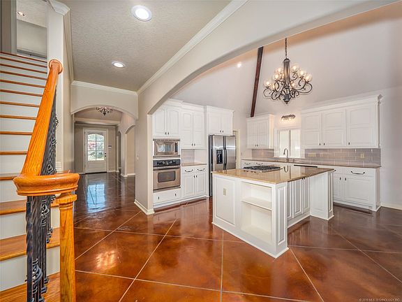 Charming Custom Cottage with Kitchen Makeover & Private Low-Maintenance Yard in the beautiful gated Woodfield Village, Jenks SE! Stunning stained concrete floors throughout the downstairs, gorgeous Hardwoods upstairs, beamed ceilings, central vac & more! Vaulted Granite Kitchen with Butler's Pantry is open to Light & Bright Great Room plus Dining, Office and Master Suite complete the first floor. 2 Additional Bedrooms with Pullman Bath upstairs. Quiet, Backyard with full privacy fence and covered Patio. 2019-06-19