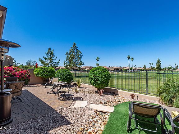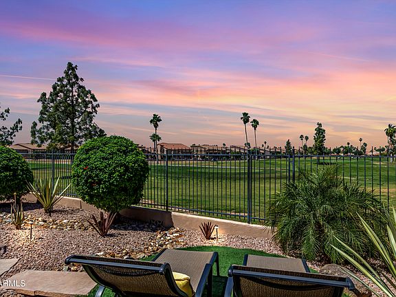 Welcome to NE Mesa's premier gated & golf course carefree living community! This 3 bedroom 2 bath villa is a must see! Gated private courtyard entry. Enter into an open floor plan. Kitchen offers an abundance of cabinets, prep island, gas stove & informal dining. Plantation shutters thru out the home. Comfortable family room open to formal dining area. Master retreat w/ walk in closet, vanity w/ 2 sinks, soaking tub & walk in shower. Other two bedrooms w/ full bath. Laundry rom w/ cabinets. The backyard is where you live! This west exposure offers very special golf course & sunset views. Lush landscaping, fruit trees, covered patio, electric awning all offering relaxing outdoor space. Community offers heated pool, spa, clubhouse, fitness area, pickle ball, movie room ect. HOA covers: Roof exterior of the home, blanket insurance, front landscaping, cable and internet!