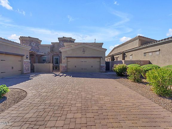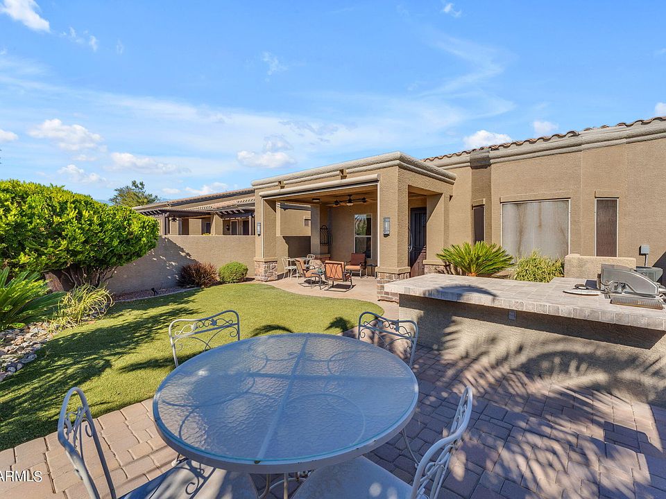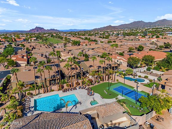 Turn-key home in the gated community of Tuscany Villas. This home boasts pride of ownership with a brand new HVAC installed earlier this year, newer wood look flooring throughout, neutral interior paint, and newer stainless steel appliances. The backyard is a sanctuary offering built-in BBQ, paver patio and raised seating area, private patio with a powered sunshade when needed. Front and back doors have locking privacy screens allowing you to enjoy the upcoming cooling temperatures. Amenities include a heated community pool, fitness center, tennis, and club house. Close to the 202, shopping, and dining all nestled within the Painted Mountain Golf Course. HOA maintains roof, exterior paint, and front yard landscaping making this the perfect lock & leave.