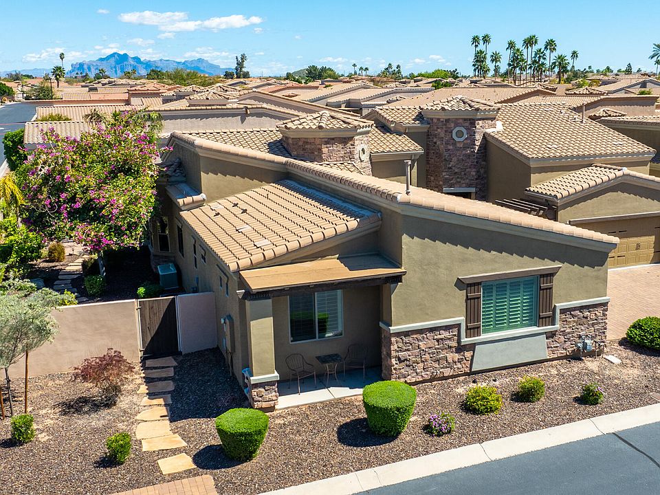 Live the resort life in this immaculate 3-bed end-unit at Tuscany Villas! Open floor plan boasts natural light, 10ft ceilings & a spacious great room ideal for entertaining. Sunny kitchen offers ample cabinets, island & gas range. Relax in the resort style private backyard or unwind in the primary suite's spa-like ensuite. Move-in ready & meticulously maintained! HOA covers exterior maintenance, pool, spa access, exercise room, community clubhouse and more!! One of the largest lots in the community. Unbeatable location near shopping, restaurants, golf courses & freeways. Don't miss this gem!