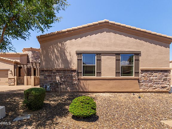 Step outside to your peaceful west-facing backyard, professionally landscaped with lush greenery, and perfect for relaxation or entertaining. An electric retractable awning offers sun protection, while the extended patio and built-in firepit create a warm ambiance for enjoying Arizona evenings.