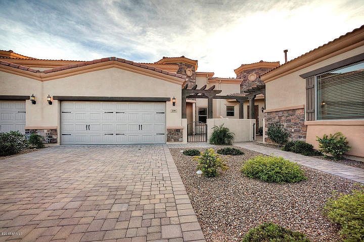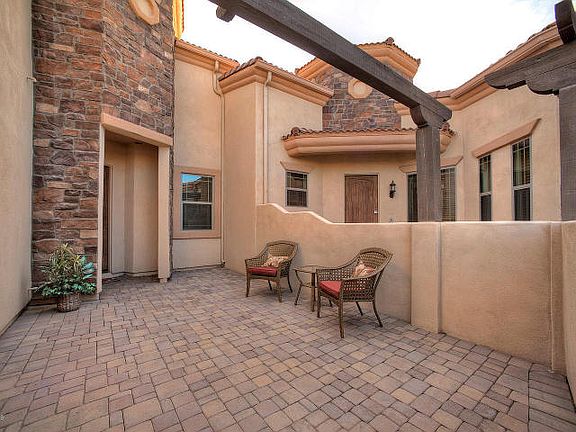 Welcome to this charming home with courtyard entrance & long private driveway (not shared) in the highly desired Tuscany Villas (Gated, golf, restaurants, shops). Once inside you'll notice this ultra-clean, well maintained home looks barely lived in, because it is! 20'' tile extends throughout all living & traffic areas, with carpet in bedrooms. Upgraded black appliances include gas range, built in microwave and the fridge stays, as well as the washer/dryer. In fact, if you are looking for a furnished home that you can start enjoying right away, this is for you! Just bring your toothbrush! Upgraded fans, wood blinds, raised panel doors, cabinets in laundry and a pavered patio with coveted north/south exposure are just some of the extras you'll enjoy. (click more)