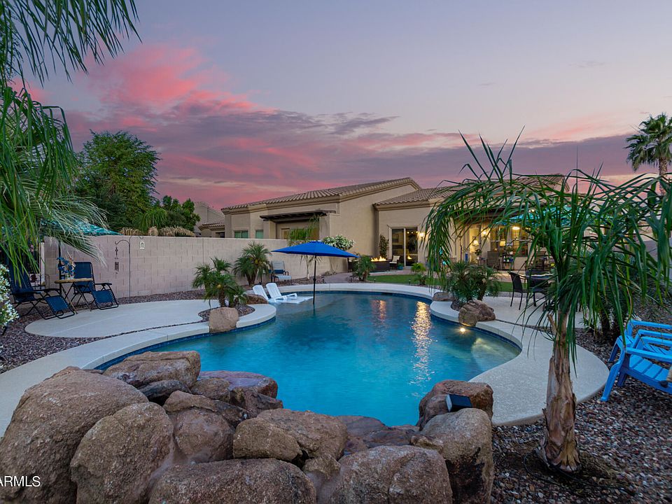 Very rare home w/ POOL offered within the GATED & GOLF course community of Tuscany Villas at Painted Mountain Golf course! Simply stunning 3 bedroom 2 bath home. Gated courtyard entry. Open floor plan! Plantation shutters & custom window treatments.Title thru out home. Great chef's kitchen w/ cherry cabinets, granite countertops & lg prep island. Informal & Formal dining area. Great room has lg windows overlooking the pool & BY. Private owners suite w/ unique slider to the pool. Master bath has inviting soaking tub, 2 sink vanity & walk in shower & walk in closet.Two other bedrooms with full bath. 2 car garage. Private backyard is paradise! Sparkling pool, lush landscaping, patio pavers & covered pool. Community offers clubhouse, heated pool, spas, pickleball, fitness center & social events. HOA covers: roof, exterior of home, front landscaping, internet and cable.