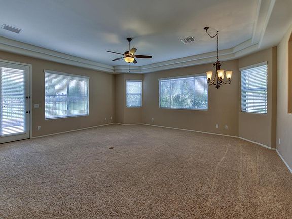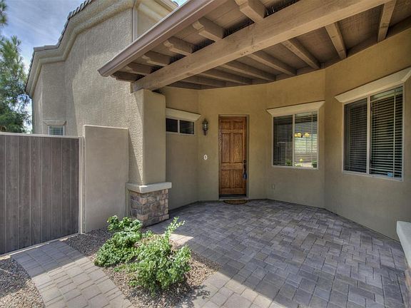Tuscany Villas offers the best in resort lifestyle living where you can walk to golf and restaurants. Nestled within the Painted Mountain Golf Course, this 3 bedroom villa offers many custom features. The kitchen has custom maple cabinetry with stunning granite countertops plus GE Profile appliances. The large great room boasts coffered ceilings. A spacious master suite has double closets plus a walk-in tiled shower with dual shower heads. The SE facing patio, complete with retractable awning and spa, overlooks the forward tee on the 18th fairway. The home has an oversized garage measuring 22x27 deep. There is also a patio area at the front entry as well as a patio with garden doors off the guest suite. Homeowners enjoy the community heated pool, spa, clubhouse and fitness center.