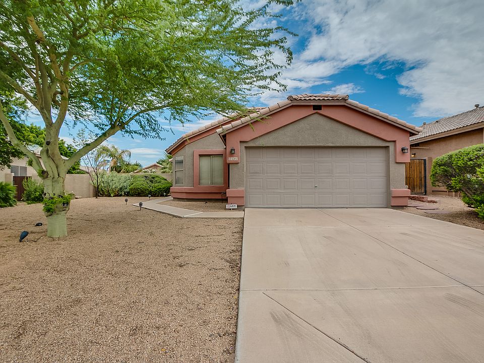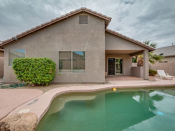 The colorful exterior of this Mesa home is matched by tile flooring inside, a fresh coat of interior paint, and new carpet in the bedrooms! Don't miss the back yard, with a private pool and extended patio ideal for barbecuing and surrounded by palm trees for a tropical feel. Inside, find an open layout with a den accessible through an archway in the family room. The kitchen is equipped with a stainless steel range and ample cabinet space. Master suite amenities include a walk-in closet, an extended vanity counter, and a separate tub and shower. Short drive to Basha's, Walgreens, and additional shopping and dining options at Red Mountain Promenade. Accessible via 202. All Opendoor homes come with a 30-day satisfaction guarantee and one-year premium warranty. Terms and conditions apply. Open House: Mon-Sun, 6am-9pm