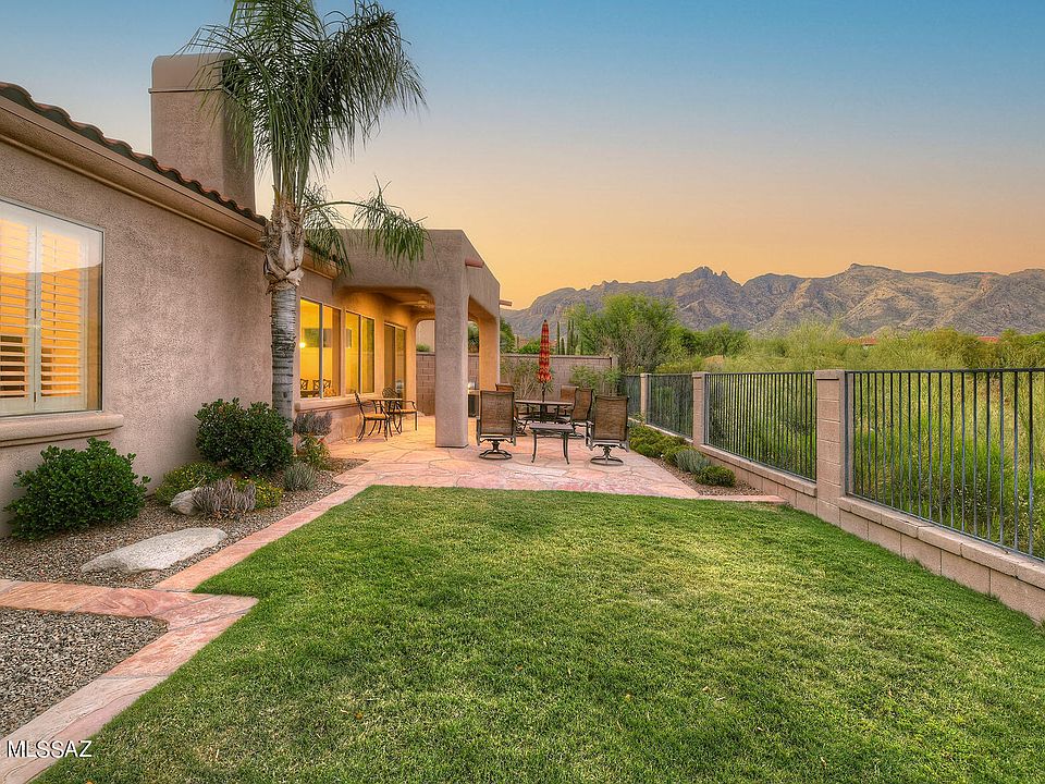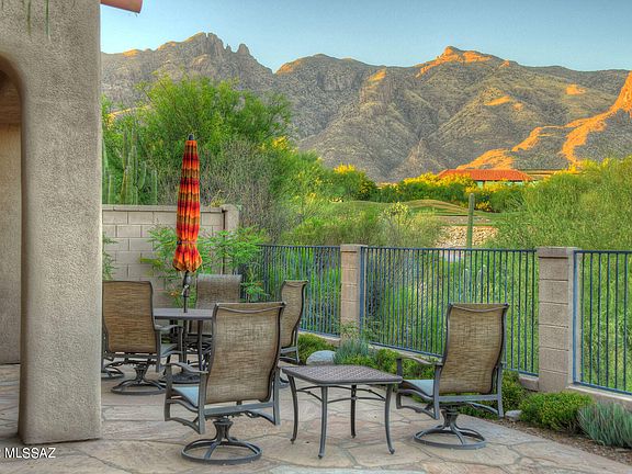 Sellers will consider offers between $725,000 and $750,000. This outstanding 2,118 sq. ft single-story patio home with no steps is located in prestigious, guard-gated Villages of La Paloma, adjacent to La Paloma Country Club. The 3-bedroom 2 1/2-bath residence backs up to a common-area desert and the La Paloma Golf course with desert, golf course and Catalina Mountain views. The spacious great room features a high ceiling, a walls of glass, a cozy fireplace, neutral ceramic tile flooring, brand new neutral carpeting and plantation shutters. The fabulous gourmet kitchen provides a breakfast bar, granite counters, generous cabinetry, and new stainless steel appliances including a gas cooktop. The gracious primary bedroom offers dual sinks, a walk-in closet with built-ins, a walk-in shower and