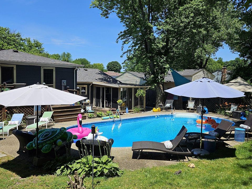 A Hidden Gem In Crestwood! Gorgeous Property w/ Amenities Galore! Vacation at Home! Privacy Fenced Yard Boasts INGROUND SALT WATER POOL! SUNROOM w/ Side Patio & A Firepit Area w/Fountain! Updated Chef's Delight Eat In Kitchen w/ Granite Countertop & Travertine Backsplash, Center Island, Top Of The Line GE Appliances, Kitchenaid Gas Stove! Formal Living Rm w/Fireplace & Built In Bookshelves. Spacious Primary Bdrm w/ Door To Private Deck Overlooking & Walking Down To Pool Area. (Guest Bdrm #2 Also Has Door To Outside Deck). Unique Basement Is Fully Finished In A Cozy Rustic Wood w/ Family Rm w/ Pool Table Area & Wood Burning Stove (Seller's Love It In Winter). Half Bath. Storage Shed. Roof New 2020, House & Garage Electric Panels New 2020. Attic Area Over 2 Car Gar Ready To Finish! Current Attic Access Is Pull Down Ladder From Garage. Primary Bedroom and 3rd Bedroom Have Closet Opened Between Them, Great For A Private Dressing Room ( Can Be Closed Up, Per Seller). Dining Area & Living Room Are Carpet Only. Roof New In 2020. Storage Shed. Side Patio w/ Gate For Easy Access To Pool For Guests. Large Laundry Room w/ Sink And Laundry Chute From 2nd Floor! Seller Purchased From Fiance April 2023 For Personal Reasons For Mortgage Amount Owed Of $160,000.