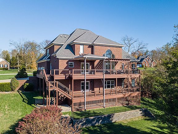 Welcome home! This home features a totally open floor plan, complete with hardwood floors, upgraded detailed molding package, double story great room with boxed beamed ceiling, built in bookcases, fireplace and palladium window. Kitchen is loaded with quality cabinets, custom work island, upgraded appliances and planning area. Large pantry and separate laundry room. Big dining room with columns and ample natural light. Master bedroom has hardwoods, rich moldings, luxury master bath with double vanity, shower, tub and designer custom closet. Upstairs has gorgeous balcony overlooking entire main floor with iron spindles and hardwood floors. Four additional bedrooms complete the upper-level, each with huge custom closets. Two of those bedrooms feature a radiant heated floor, jack-and-jill bath complete with double vanity, as well as another private bath in a separate bedroom, also with radiant heated floor. The lower level features a big family room with custom built-in bar area for gatherings, that includes a separate freezer/fridge combo, dishwasher and sink. A full bathroom, workroom with built-in work bench and cabinets, storage space, and another bedroom with huge walk-in closet rounds out the basement. Lower-level walks out to a private patio. Huge three car garage with storage cabinets and custom floor paint. Covered deck with unbelievable sunset views and retractable shades on upper and lower levels! Beautifully landscaped private back yard with custom tree house to fulfill every child's dreams. Two-story, freshly stained back deck with ample space for entertaining friends or enjoying family time. Yard features large brick patio perfect for fire pit or outdoor entertainment. Irrigation system throughout entire yard. Whole-house security system built in. This home has been meticulously cared for, loaded with extras, and in the highly sought-after Oldham County school district! Call 502-537-0314 to schedule a showing!