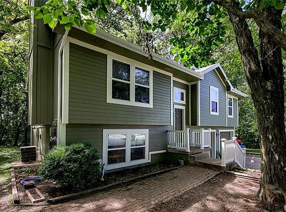 Adorable Split Entry home nestled away in the woods on 3/4 of an acre! Close to Smithville Lake. Brand new gutters and exterior paint. The living room features a fireplace and wood floors. Plenty of cabinets and counter space in the kitchen. All appliances are staying with the home including the washer/dryer and reverse osmosis water filter system. Master suite has spacious walk-in closet, double vanity, and walk-in shower. Nice deck! Backs to trees!