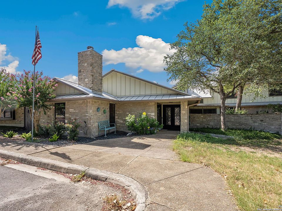 **OPEN HOUSE Sat Sep 14th Noon - 3 PM** Classic elegance paired with modern style in this beautifully renovated 5-bedroom Windcrest gem. The spacious, open-concept residence is full of luxurious features, from a chef's kitchen to an exercise room, a secluded courtyard with a pergola. Enjoy peaceful evenings in the screened patio that offers peaceful views of the neighborhood park & relaxing fountains. The downstairs living area has tall ceilings accented by a stunning wood beam plus a gas fireplace for added warmth. A dedicated bar area and a library loft create ideal spots for entertaining and relaxation, while the oversized workshop offers a versatile space for hobbies or projects. True chef's kitchen features Z-Line gas cooking, dual ovens, & large stainless farm sink, ample storage with oversized kitchen cabinets, large built-ins in the eat-in kitchen area, & large pantry. Retreat to the split master suite, complete with its own private office & a second fireplace. The master bathroom impresses with dual vanities, dual closets, and spa-like finishes. Upstairs, you'll find generously sized bedrooms with large walk-in closets & a shared Jack-and-Jill bathroom, providing plenty of space and convenience for the whole family. Enjoy the convenience of a low-maintenance lifestyle with zero landscaping duties and solar panels to help lower energy costs. Located at the end of a quiet cul-de-sac, this home is just steps from the community park and offers quick access to downtown San Antonio, The Pearl, the airport, Fort Sam Houston, and Randolph AFB. Make this home yours today!