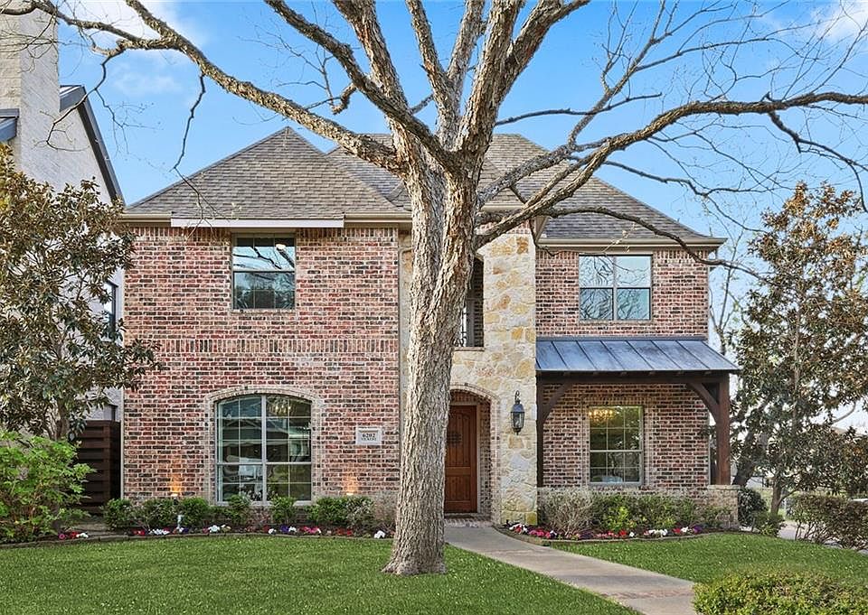 Stunning newer home built by JGH on 170' deep corner lot. Great drive-up appeal w- stone & brick exterior, balcony, covered porch & mature trees. Great indoor-outdoor entertaining flow between spacious 2-story family room w- stone frpl & wet bar; adjacent eat-in kitchen w- lrg prep island; & fabulous covered outdoor living area w- built-in fireplace & grill overlooking heated pool. Bdrm w- full bath down & other bdrms up. Master suite has wd flrs, tray ceiling, & spa-like bath. Beautiful design details incl balonies, French doors, tray ceilings, angles, arched doorways, custom millwork, wd flrs & graceful curved stairway. Low-maintenance yard w- dog run. Private 17' x 14' guest qrtrs above detached garage.