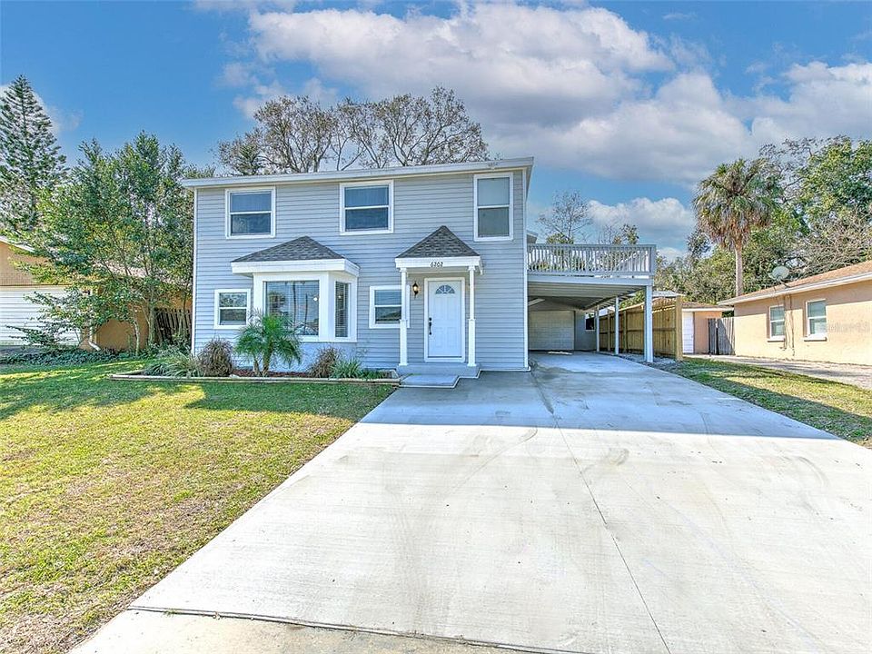 Must See! Beautifully updated two-story, 1860 sq. ft., 3 bed, 2 bath, one car garage situated in a family-friendly neighborhood. Updates include newer roof , newer AC system, paint, luxury vinyl flooring, and new carpet upstairs. Completely remodeled bathrooms include new vanities, showers, and flooring. Kitchen features new shaker cabinets, granite counter tops and newer stainless steel appliances. The Master bedroom balcony overlooks the beautifully landscaped yard with Gazebo and workshop/storage shed. Plenty of room for the whole family to enjoy. Only minutes from Main Street in downtown New Port Richey and Sims Park. Move in ready. This home is sure to go fast! All room measurements are estimates and should be verified by the buyer.