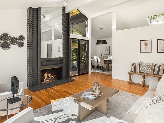Nestled in Edmonds’ Meadowdale neighborhood, this 4-bed + den home offers vaulted ceilings, an array of windows, & refinished hardwoods throughout the main create an airy light-filled setting. Wood-burning fireplace w/ floor-to ceiling brick accent. Formal dining w/ stylish light fixture. Kitchen has all SS appliances & 4-burner gas range. Skylights & eating space that leads to the brand NEW deck & stairs to fully-fenced backyard & patio. Tons of room to roam on nearly ¼ acre. Primary Suite on Main w/ its own deck & WIC w/ built-ins, bath w/ skylights & new tiling. Lower level offers additional entertaining space w/ rec-room & 2nd fireplace. Mud/laundry room w/ utility sink & shelving. 2-Car attached garage & long driveway.