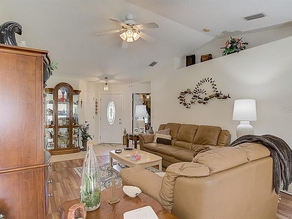 Welcome to Regal Oaks, a quaint neighborhood with the benefit of a community pool yet low HOA and NO CDD! Imagine sitting in the tree swing in your beautifully manicured front yard taking in the stunning colors of the sunset every night as the cool breeze blows. Once you open the front door off the screened in entryway, you will be welcomed into the living room offering wood floors and a vaulted ceiling. The living room continues into the separate dining room off the kitchen. The kitchen, with eat-in area, is angled to provide an open concept view of the dining room, living room and back yard, so you can easily entertain. On the opposite side of the house you will find the Owner's suite with owner's bathroom, walk-in closet and a sliding glass door to the private screened lanai overlooking the spacious, fenced in back yard. The second and third bedrooms are located in the front of the house with the second bathroom. You can also make this into a second suite with one bedroom and a second living room. This is the perfect home for a first time home buyer or downsizer. Centrally located in Bradenton, close to shopping, dining and I-75 for an easy commute to Sarasota, St Petersburg or Tampa.