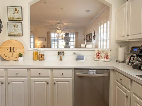 This is a beautiful, spacious and newly painted and wallpaper removed FIRST FLOOR-END UNIT condo located in the rear section of the desirable Barefoot Resort community of The Havens with tens of thousands in recent upgrades. The upgrades include stainless steel appliances, luxury vinyl flooring throughout the entire condo, enclosed screen porch with vinyl windows and new bar with beer/wine fridge. This unit features 2 bedrooms and 2 bathrooms, with an open floor plan that is perfect for entertaining guests. The kitchen is fully equipped and the living room boasts large windows that let in plenty of natural light, along with the plantation shutters in the dining area for extra light. The bathrooms boast brand new toilets, vanities and lighting. The master bedroom has two closets including a walk-in closet. The master ensuite bathroom has a luxurious step-in shower which is a rarity in these condos. The porch has gorgeous views of pond and fountain. The water view starts at the front door and continues throughout the condo! New HVAC unit in 2021 and new water heater in 2023. Other amenities include: access to the community pool, and proximity to the beach and the new oceanfront private beach cabana, a seasonal shuttle to and from the beach, along with the great location of Barefoot Landing with plenty of shopping and restaurants, along with House of Blues and Alabama Theater. Barefoot has 4 championship golf courses and a multi-million dollar clubhouse. Come and enjoy the Barefoot lifestyle, you will be glad you did! Many items convey: Guest bedroom bed and mattresses, Dining room table and chairs, Entry table in foyer, Gray cabinet in living room, Bar cabinet/refrigerator, Stainless steel kitchen appliances, Washer/dryer, Wall decor above couch and Kitchen decor above cabinets, curtains and curtain rods.