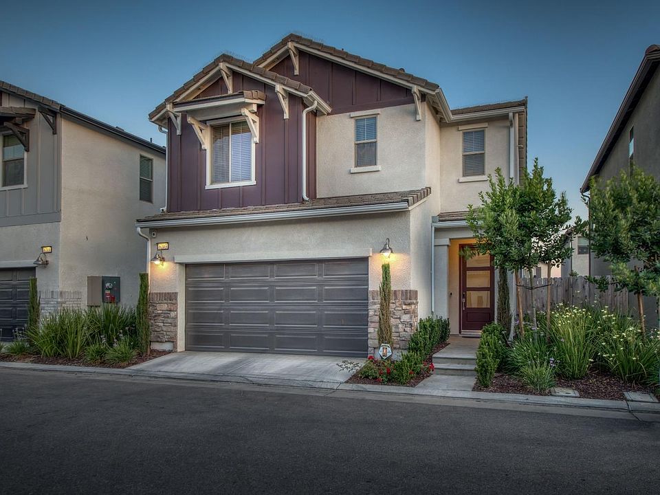 Welcome to the Canvas Collection by Granville! This gated community is newer built and boasts wonderful amenities such as a green area and swimming pool. The finishes in the home are both warm and modern. This property has a free flowing concept on the ground level, blending the kitchen and main living space. The tile plank flooring is desirable and covers the entire first floor, complimenting the stainless steel appliances and granite well. The kitchen features a bar stool seating area, nook, panty and plenty of counter space for food prep and serving. There is a half bath downstairs as well. The upper level features three bedrooms, including the master suite, a hall bath, and a laundry room. The bedrooms have carpeted flooring and the laundry and bathrooms have tile plank. The master bathroom has a shower, tub and walk in closet. The hall bath has a shower/tub combo. The backyard has existing concrete and a nice lawn area and festoon accent lighting. The sellers are including 3 ring cameras as well as the Nest video doorbell. Discover the perfect blend of modern living and eco-friendly features in this home, crowned by the 3.85 kW Owned Solar system!