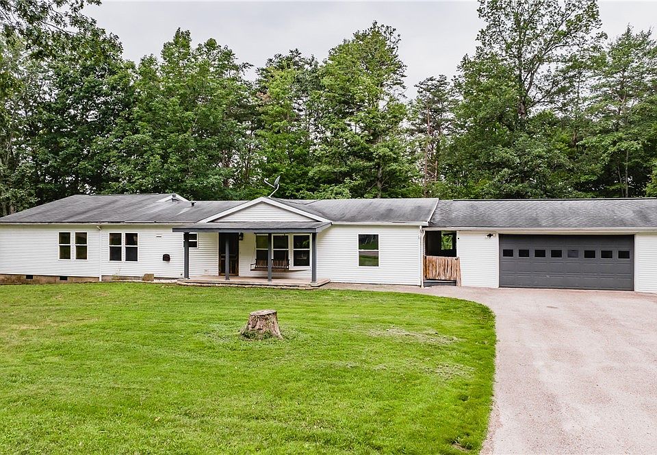 Charming 3 bedroom, 2 bathroom modular home nestled on a permanent foundation in a serene, rural area in Warren Local School district. This property offers a blend of modern convenience and nature's beauty, with 2 acres of land enveloped by lush woods. Embrace a tranquil lifestyle while enjoying ample space for both indoor and outdoor activities. Some features worth mentioning are the stainless steel LG appliances that iclude dishwasher, gas stove and microwave. Very generously sized master bedroom offers spacious walk-in closet and master bathroom comes equipped with both jacuzzi tub and seperate shower. Home also has full mud room, laundry room, attatched garage with breezeway, front and back porches and two storage sheds. Central AC was recently serviced and the hot water tank is new. This home is move in ready and waiting on your TLC to make it your own. (cosmetic needs only) This property is being sold AS-IS.