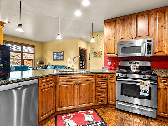 This stunning 2-bedroom, 2-bathroom condo offers the best of both worlds: upgraded finishes and a prime location. Built in 2005, it wasn't lived in until 2010, meticulously maintained as the developer's model unit. Enjoy the perks of upgraded appliances, granite countertops, custom cabinetry, and designer touches throughout. The main level boasts an open floor plan with wood floors, a gas fireplace, and a private patio overlooking a large pond. Unwind by the pool or entertain in style at the clubhouse, just steps away. The sellers have added beautiful western rustic elements, including a custom bar with knotty pine accents and roll-out shelves. This condo offers unbeatable value with top-of-the-line features and a resort-style community. Don't miss your chance to own this one-of-a-kind property! Call/text Stefanie Hanson 406-609-2212 or your real estate professional.