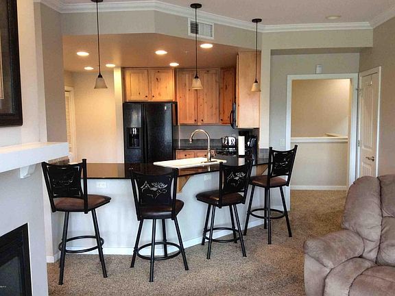 Enjoy this gorgeous condo with stunning views from the large, porch! Fully furnished! The much desired, Marias floor plan comes with granite countertops, tile floors, walk-in-tile shower in the guest bathroom, crown-molding and gas fireplace in the living room. Master bath has deep soaker tub. Views of the mountains, pond, stream and bridge. Club house has pool, hot-tub and tennis courts!