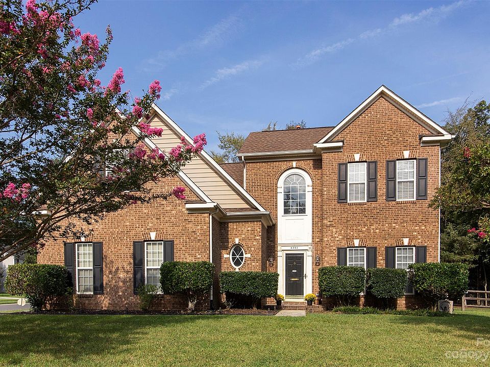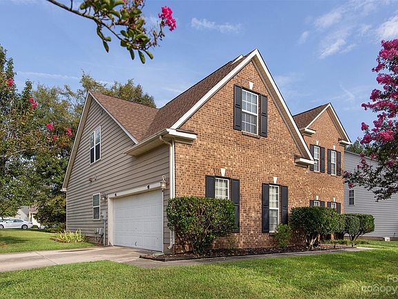 Great 2 story home on a large corner lot of Eastfield Ridge. This home boasts a brick front, primary bedroom/bathroom on main, beautiful landscaping and side load garage! The family room feels extra large with its two-story ceiling and is partially open to the kitchen and breakfast area. Kitchen boasts stainless steel appliances. The primary bedroom has a tray ceiling, good size bathroom with dual sinks and separate tub and shower. Additional two bedrooms are upstairs which share a hall bath, with a large bonus room, perfect for entertainment, hobby or relaxing. The corner lot provides extra space and privacy with mature trees in back.