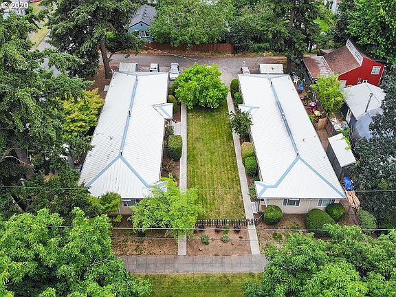 Charming mid-century triplex near Woodstock! Vintage charm w/ modern updates, lots of light & greenery, laundry rms, storage, off-street parking. One level=EZ to maintain. Located in pleasant area of single family homes near library, cafes, New Seasons, services, bus, bike, car lanes. Excellent rental history, EZ to rent. Must be purchased with adjoining triplex at 6217 SE Carlton, RMLS #20637236. Two triplexes on separate tax lots form SIX-plex w/central courtyard. Residential financing!