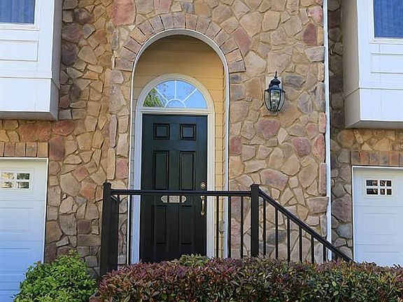 Beautiful 4 Bed/3.5 Bath Townhome with Garage! Freshly Painted! Main level features hardwood floors, gas fireplace, formal dining room, 1/2 bath, and kitchen with dual pantries, gas range, walk out to deck w/ private wooded backyard. 1st level bedroom off garage has private full bath, spacious closet , & walk-out patio! Master suite w/ trey ceiling, dual vanity, & walk-in closet! Walk to pool & gym! Run along dog friendly sidewalks! Close to 540/440/shopping! Home Warranty! Ask for $1,000 Lender Credit!