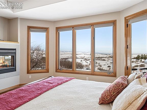 Lambert Ranch is one of the best kept secrets in Colorado and now is your chance to call it home. Situated on just over 10 acres, this estate welcomes you from the moment you drive up the driveway until you enter the home and take in the beauty that surrounds you. The foyer greets you as you make your way to the living room that was designed to capture breathtaking sunsets with the large windows that frame panoramic mountain views leaving you in awe. The gourmet eat-in kitchen features Cherrywood cabinetry, a Sub-Zero refrigerator, 5-burner gas range, double oven, and an oversized walk-in pantry. Flowing seamlessly into the grand living area, this open-concept space is perfect for entertaining or cozying up by the fireplace while taking in the incredible scenery. The main-floor primary suite is a true retreat, offering an enormous custom designed walk-in closet, a two-sided fireplace, and a spa-like en suite with radiant heated floors, quartz countertops and a deep soaking tub. Also on the main level, you’ll find a custom office, formal dining room and laundry/mud room. Upstairs, three generously sized bedrooms include an en-suite and a Jack-and-Jill bath. The walkout basement is an entertainer’s paradise, complete with a game room, fireplace, wet bar, home theater with built-in speakers, and an oversized guest suite. Step outside and enjoy multiple decks and patios, where you can soak in the hot tub, gather around the fire pit, and embrace the serenity of this incredible property. This is Colorado living at its finest—welcome home.