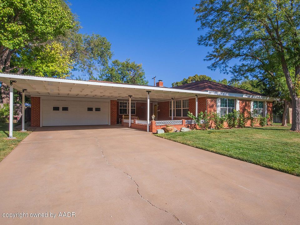 SWEET! SWEET! SWEET! 2 owner Belmar Home with 3 bedrooms, 2 baths, 2 living areas plus a sunroom w/ skylights, formal dining room, and an oversized 2 car garage & a 2 stall carport! Den has a woodburning Fireplace w/gas! New wood look laminate floating floor! Charming original kitchen with breakfast nook! Spacious bedrooms have walk-in closets! Main bedroom suite has updated 3/4 bath (shower redone with new shower pan, pvc & new tile!) Machine turn ceiling texture! Tons of storage! Utility room! Wait til you see this FANTASTIC backyard! Has to be one of best in Amarillo! Wood floor shed sits on concrete slab. Roof & HVAC about 5 yrs old, WH 1 yr! Sprinklers front & back! This home has so many updates & so much Character!