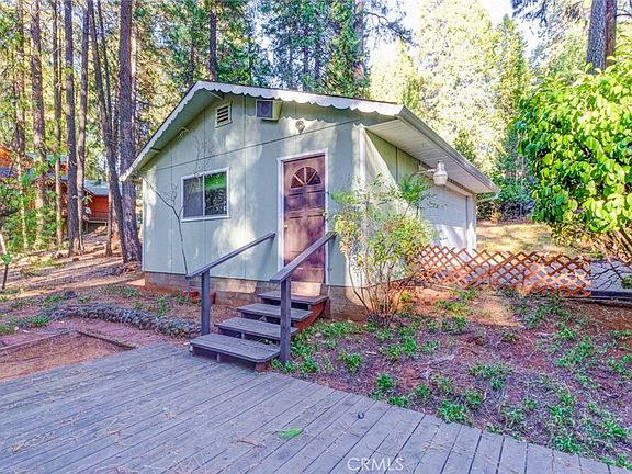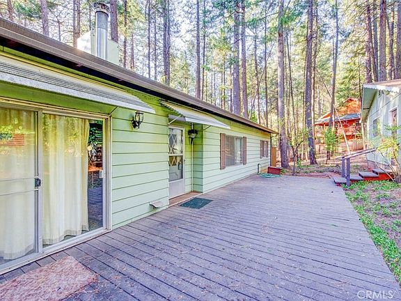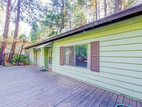 Sparkling manufactured home nestled among the trees, WITH detached two car garage and RV potential. The property sits on about a quarter of an acre, with an expansive deck stretching along the front of the home and a screened-in porch off the back, providing year round enjoyment (without the bugs!). Inside you are greeted into the first carpeted living room, which flows into the designated dining area with built-in display hutch and then into the kitchen. The kitchen is open to the SECOND living room option, which includes a free standing stove and sliding glass door to the backyard. The kitchen has been well maintained, with vinyl flooring, laminate countertops, decorative hardware on the cabinetry and electric appliances. There is then a laundry room with built-in storage cabinets, and three carpeted bedrooms and two full bathrooms (including the master bedroom with ensuite). The backyard is fully cross fenced, providing security and privacy; perfect for pets to roam, extended outdoor living and a garden! This property offers scenic, peaceful living, and could be just what you have been searching for!