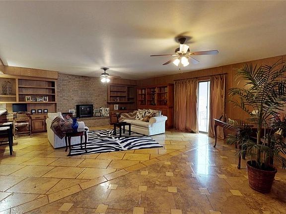Beautiful home has a side loading garage and an outdoor guest house. There is tile flooring throughout, with carpet in the bedrooms. The oversized kitchen has a breakfast bar, double ovens, lots of cabinet space, room for a trash compactor, a pantry, and a hutch in the eating space. The master has a walk in closet with a built in dresser and shoe rack, a walk in closet with built in drawers and a lighted vanity sitting area, and a full bath with a step in shower. There is a walk in closet in the entry, a coat closet in the living, and a hidden walk thru closet off the living with built in shelves. The living also has a fireplace and built in bookcases. The guest house is separate from the main house and is sold as-is. It includes a living area with a kitchenette, a bath with a shower, and an upstairs bedroom with a walk in closet or storage area.