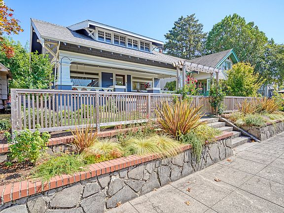OPEN HOUSES CANCELLED. Built in 1918, this breathtaking masterpiece blends impeccable original craftsmanship & modern updates. Light-filled rooms on main complete with custom blinds, original built-ins & oak floors. Gourmet kitchen with SS, island, french doors. Primary ensuite on main w/gorgeous bathroom & large closet. Outdoor living at its finest w/the dreamiest front porch + swing you can imagine, a backyard deck, stunning garden with newer landscaping. Oversized garage/alley access. [Home Energy Score = 1. HES Report at https://rpt.greenbuildingregistry.com/hes/OR10110621]