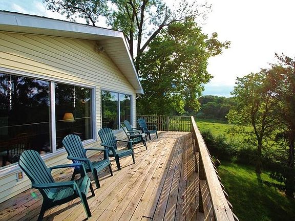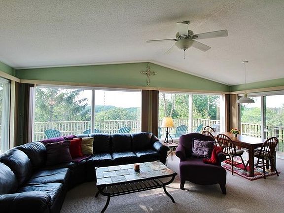 Quaint Cottage Ideal West-side Weekend Retreat If you'd love to downshift from the hustle and bustle of life, this could be your sweet escape. Tucked on a gentle slope among many trees, you will fall asleep listening to the breeze and wake to birds singing in this 2 BR/2 BA offshore ranch with walkout. The expansive wrap-around deck with some lake views will be your daily hangout for morning coffee, reading in the sunshine and evening barbeques. Inside, the wrap-around picture windows in the vaulted LR/DR give sweeping views that invite in both sunrises and sunsets. With two wood-burning fireplaces, things stay cozy in any season. The lower level rec room is great overflow for entertaining and year-round indoor activities. When you are ready to take advantage of the lake, it's just a short walk or golf cart ride to the newly renovated Sunset Beach, or head the other direction to the Par 3 Golf Course. This quaint and cozy cottage is waiting for you!